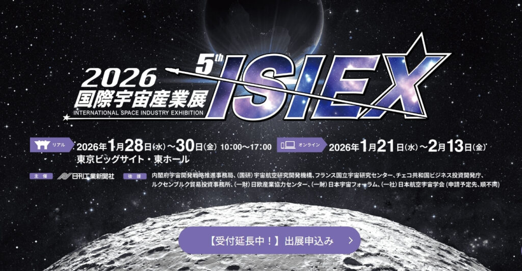 宇宙開発や月面探査、ロケット技術、衛星活用事業などに関する国内最大級の展示会です。国内外の企業や研究機関が最新の技術や製品を展示し、宇宙ビジネスの最新動向を学ぶ機会が提供されます。航空宇宙産業に携わる企業やスタートアップ向けのネットワーキングイベントも併催予定です。